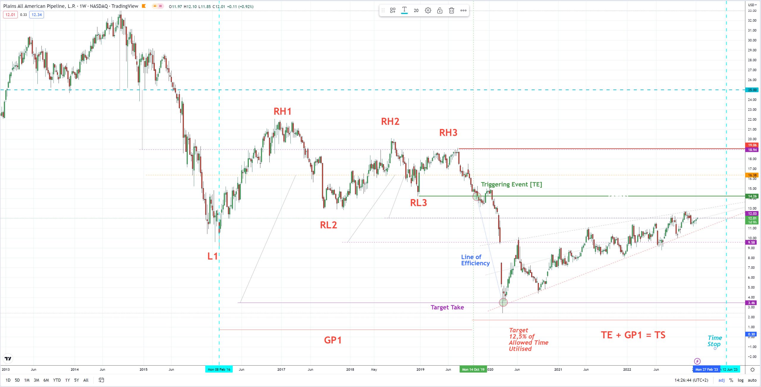 Speculative trade entered on what we call an Early Entry (Advanced HVF Method) on structure that indicates weakeness and a possible fall in PAA price may be imminent.